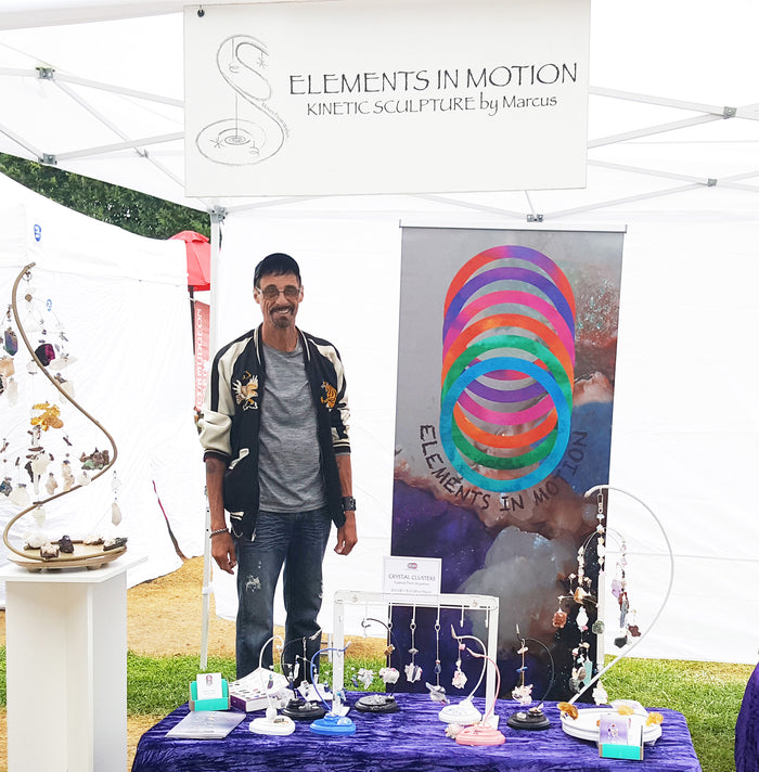 My name is Marcus Nathe, and ELEMENTS IN MOTION is a company that I started to sell unique Kinetic Sculpture, also referred to as “mobiles”.Each of my One-Of-A-Kind sculptures are made using the finest Semiprecious Stones and Crystals. They can bring peace and positive energy to any area. I have been creating sculptures and unique mobiles for over 30 years. Initially, I started creating them as a hobby in Hawaii by using crystals that offer healing and Feng Shui benefits. After retiring from my career as a hairdresser, I decided to expand upon my designs. I started ELEMENTS IN MOTION to share my designs with you. I enjoy the peaceful energy that creating these sculptures brings me and how each one is unique with positive charges.